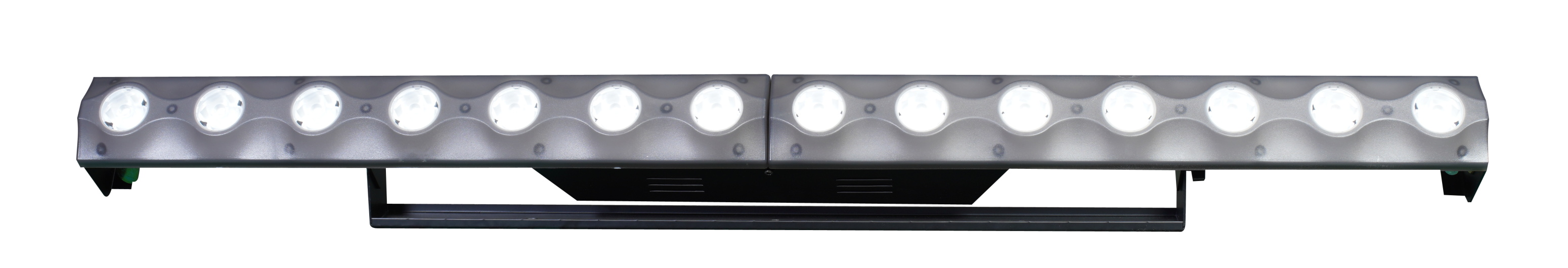 支持RDM,每颗灯珠可单独控制,灯珠正白暖白可选,色温2800K。 电源:100-240V 50/60HZ <60W 控制模式: 声控(带黑场)/自走 / 主从机 /Aatnet/DMX512 尺寸:780*80*110MM ,重量:3.2Kg