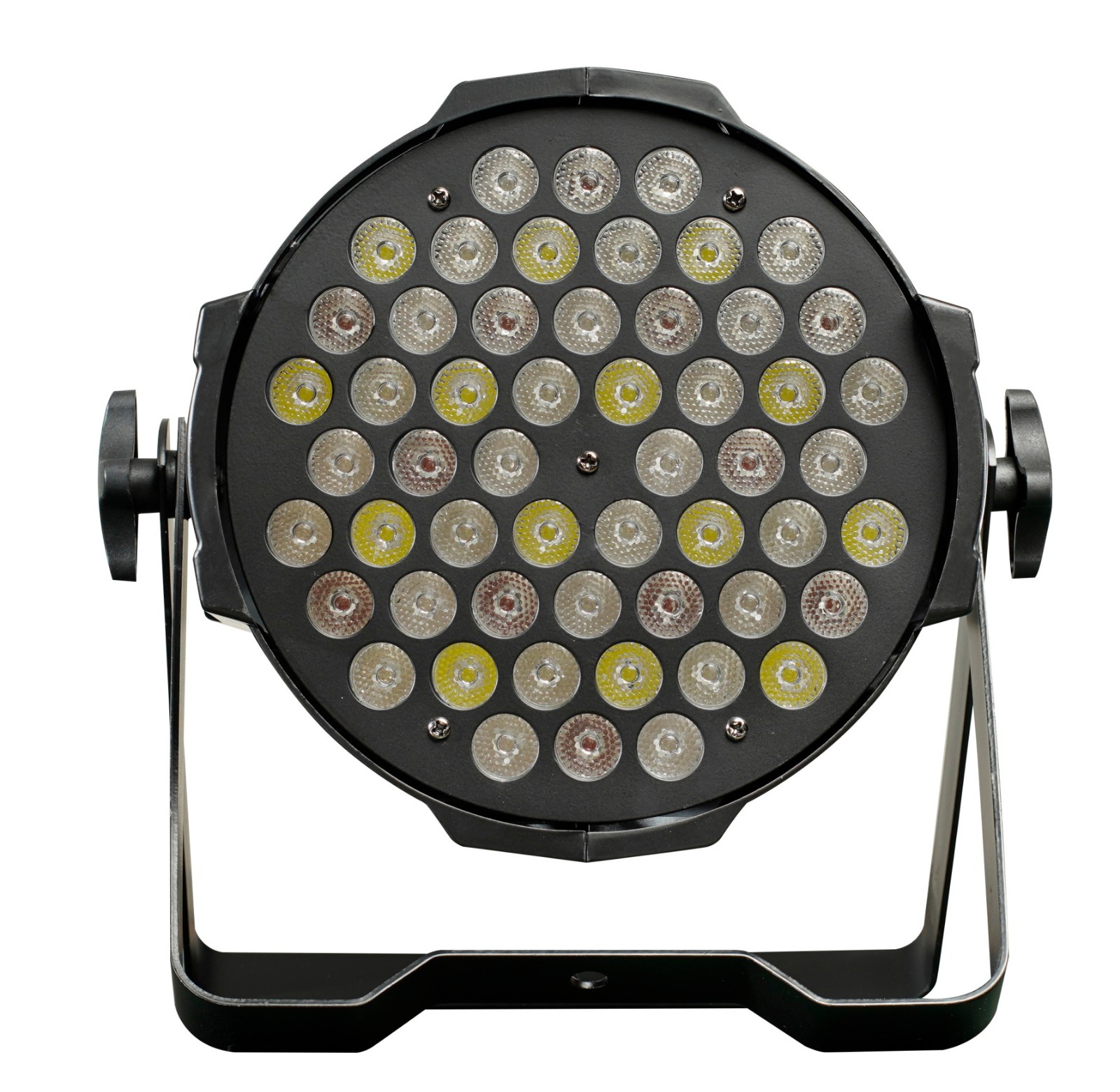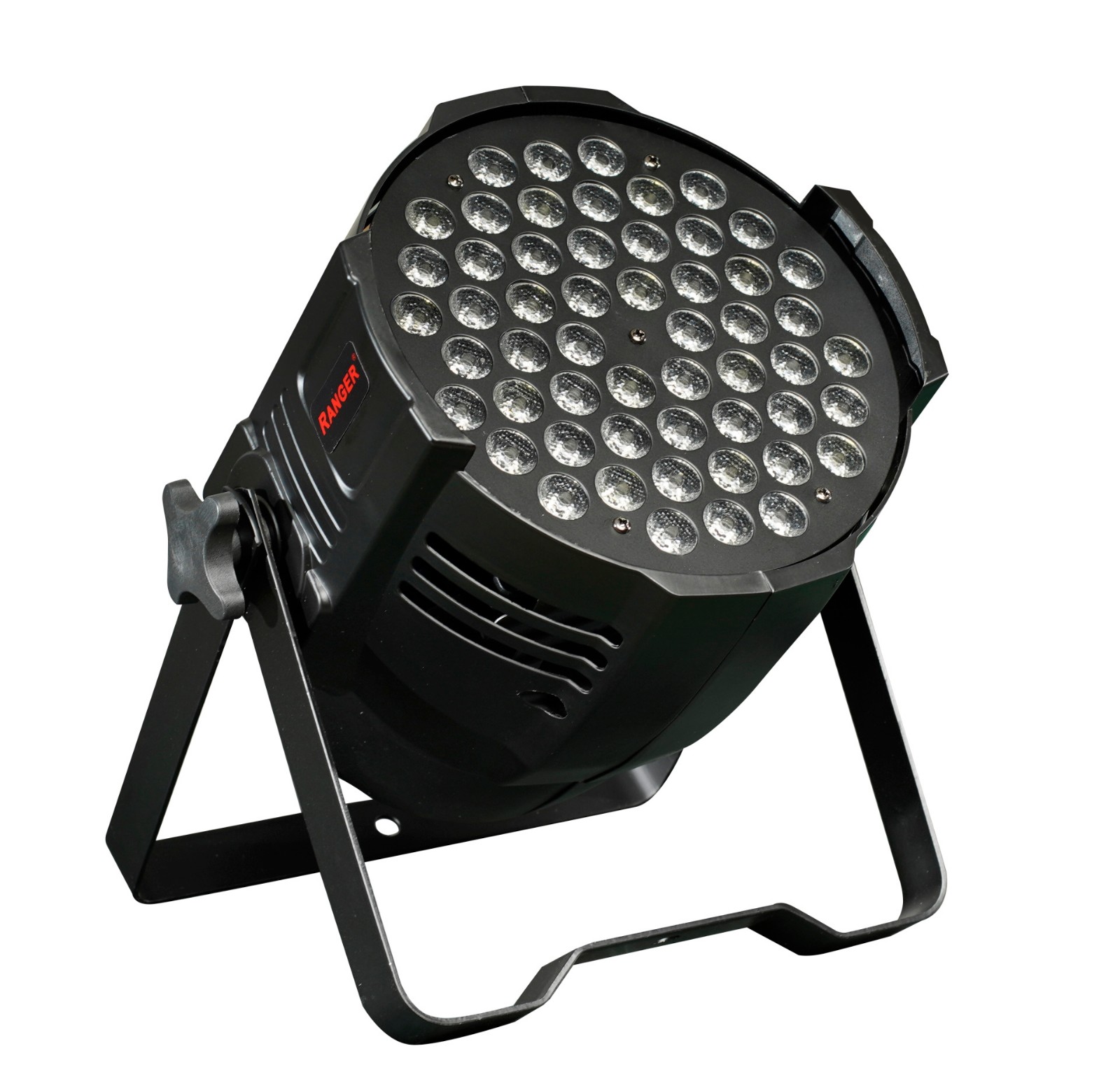54颗3W LED帕灯 54Pcs 3W LED Par Light 电压:AC110V-240V 50/60Hz 光源:3W*54LED R12 G14 B14 W14 通道:8通道/声控 功率:180W 具有主从模式控制功能,RGB分别单独调光,256级亮度,无闪烁多种频闪效果和颜色彩虹功能 外壳材料:铸铝 投射距离:30m