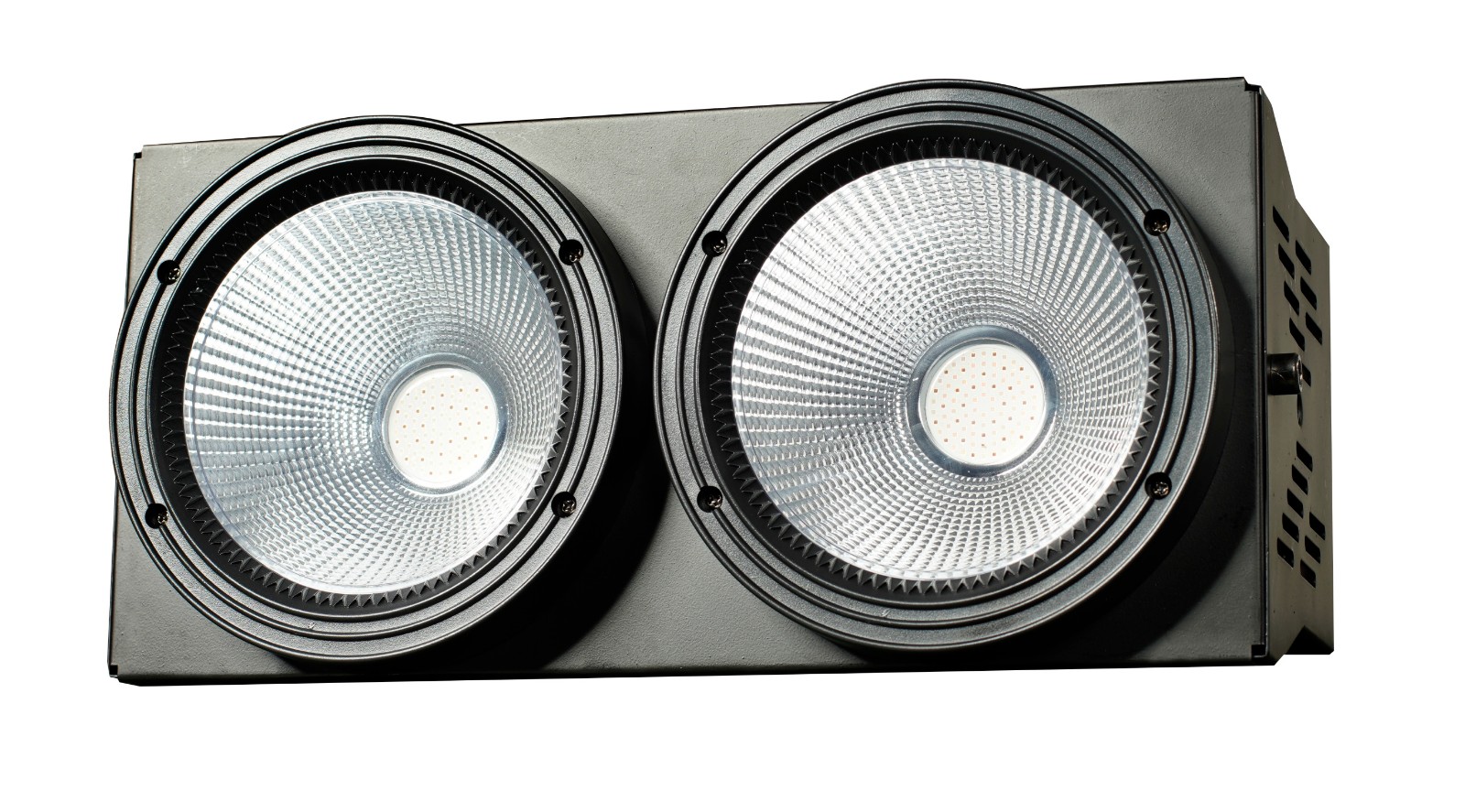 暖白,正白可选,单色COB100W 电源:100-240V 50/60HZ <220W 控制模式: 声控(带黑场)/自走 / 主从机 /DMX512(4.6通道可选) 尺寸:370*290*240MM ,重量:4Kg
